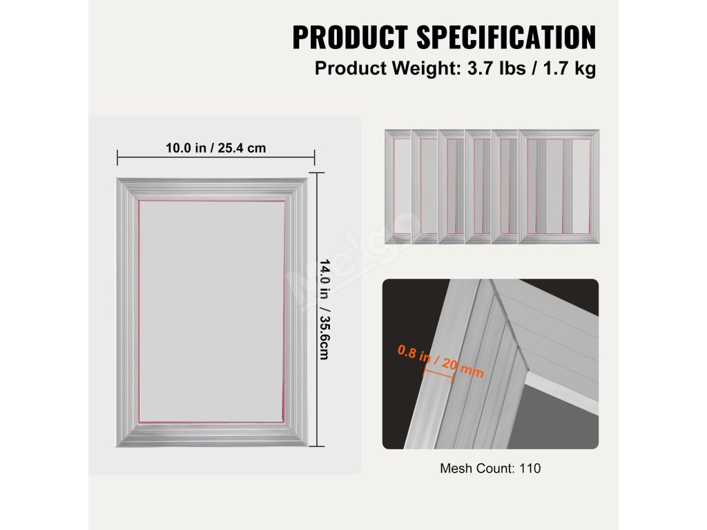 Súprava na sieťotlač VEVOR obsahuje prémiové hliníkové rámy. Tieto rámy sú veľmi odolné. Sú ľahké a zároveň pevné. Vďaka tomu sa s nimi ľahko manipuluje a používajú sa. Rámy sa nedeformujú ani neohýbajú, a to ani pri častom používaní. Táto súprava je ideálna na dlhodobé projekty. Rámy sú tiež odolné voči korózii a hrdzi. Zostanú teda dlho v dobrom stave. Vďaka vysokokvalitnej hliníkovej konštrukcii sú tieto rámy spoľahlivou voľbou. Môžete ich bez problémov používať na rôzne tlačové projekty.