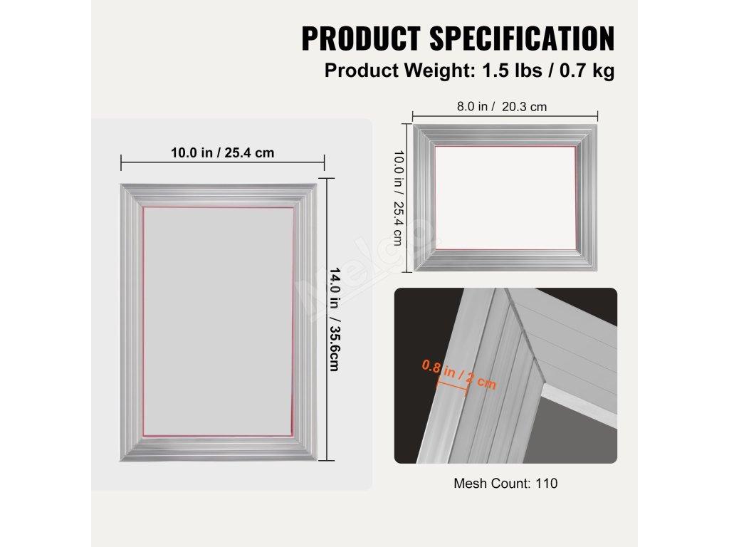Sieťotlačová sada 2 ks hliníkových rámov 8×10/10×14in, 110 mesh