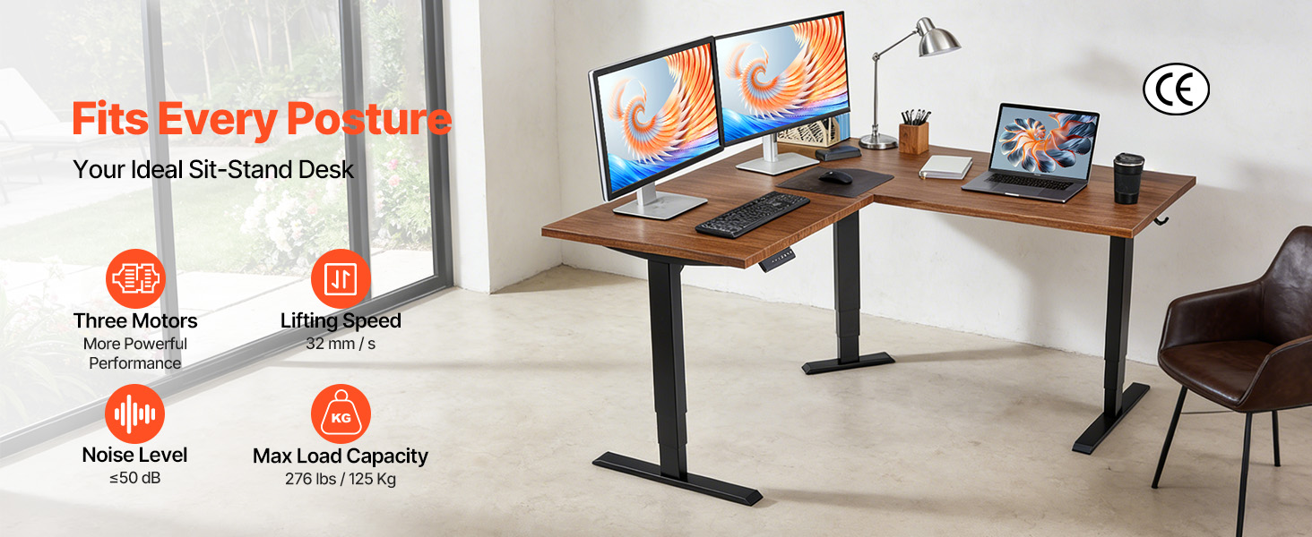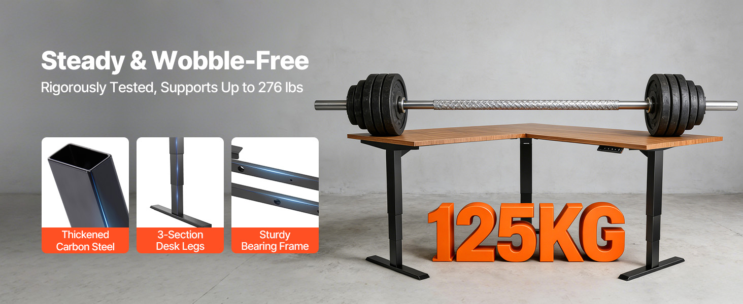 Tento rám stola, vhodný pre každú polohu, je vybavený tichým systémom s tromi motormi a unesie až 125 kg, čo z neho robí spoľahlivý doplnok do vašej domácnosti aj kancelárie.