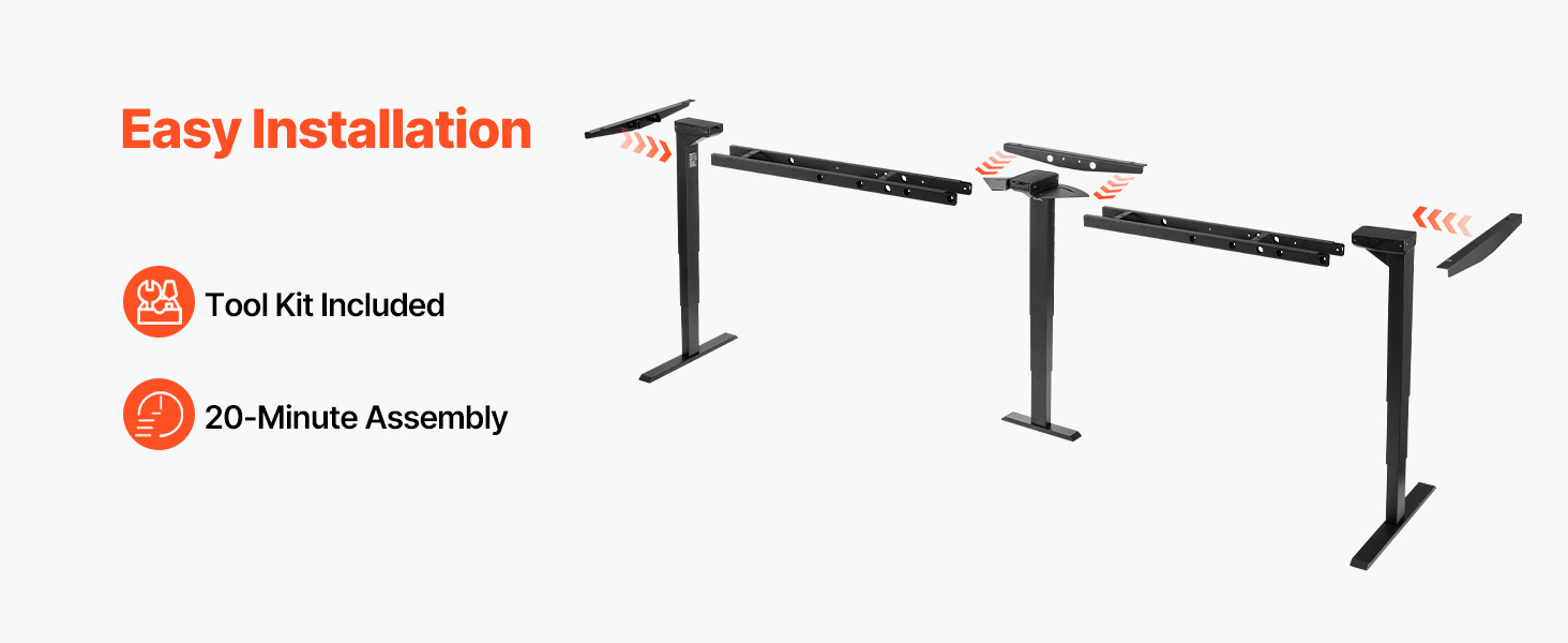 Tento rám elektrického stojacieho stola sa rýchlo montuje pomocou priloženého náradia a minimálneho skrutkovania, čím vám šetrí čas a námahu.
