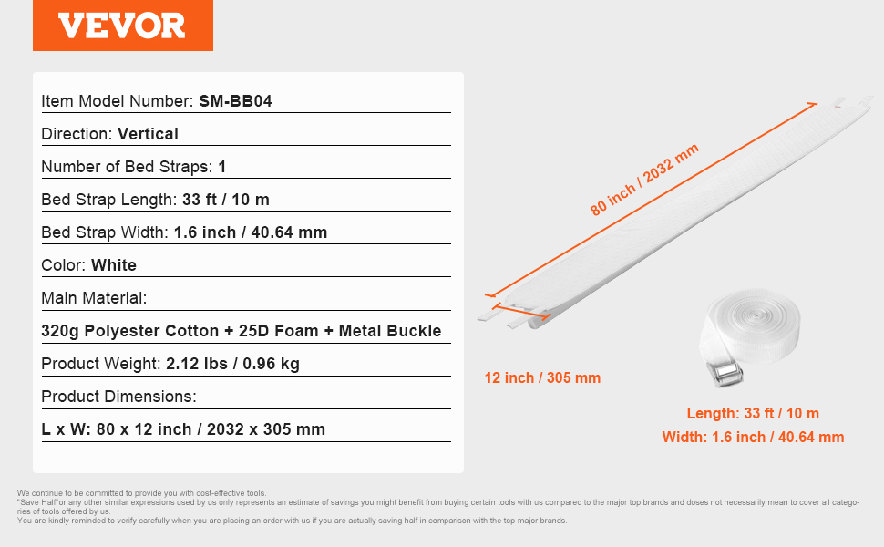 | Dĺžka popruhu postele | 33 stôp / 10 m |