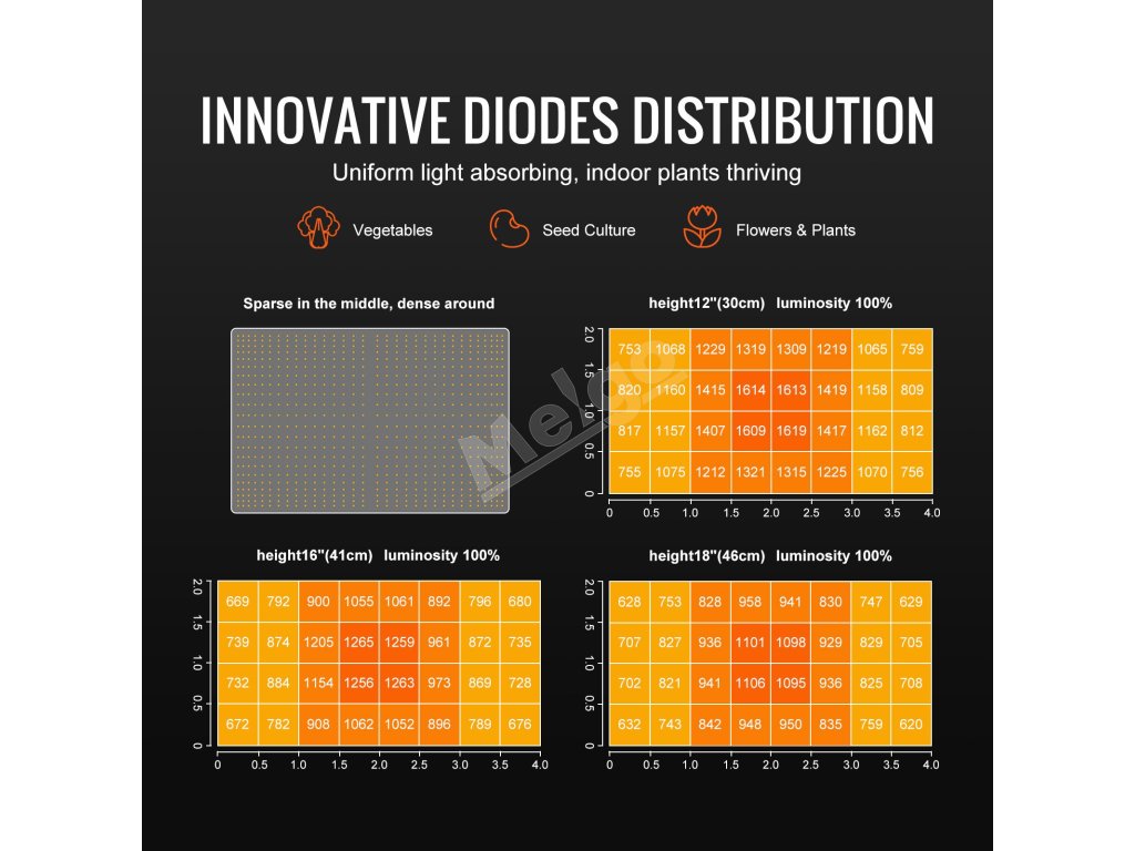 | PPFD | ≥1300umol/m2s (0,6*1,2) |