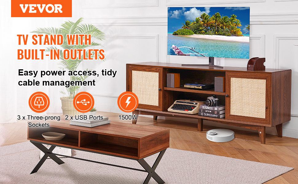 Tento ratanový TV stolík má v strednej polici integrovanú zásuvku na jednoduché pripojenie napájania a vedenie káblov, čo dodá vašej obývačke väčšie pohodlie.