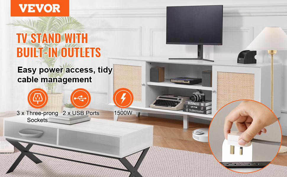 Tento ratanový TV stolík má v strednej polici integrovanú zásuvku na jednoduché pripojenie napájania a vedenie káblov, čo dodá vašej obývačke väčšie pohodlie.