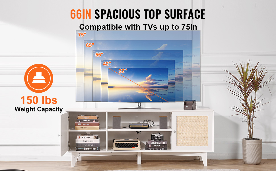 Stolík s rozmermi 165 x 40 cm pojme televízor s uhlopriečkou 191 cm a unesie až 68 kg. Keď sa ratanové zábavné centrum nepoužíva na televízor, je ideálne aj na vystavenie dekoratívnych predmetov.