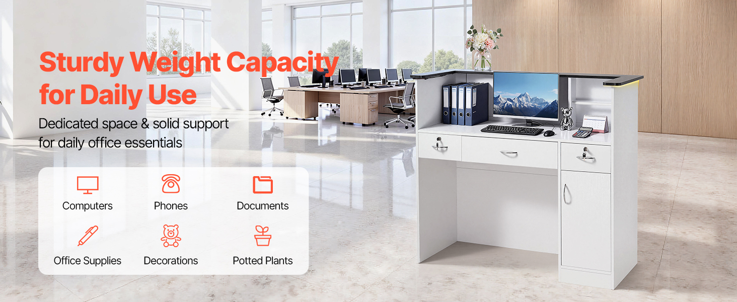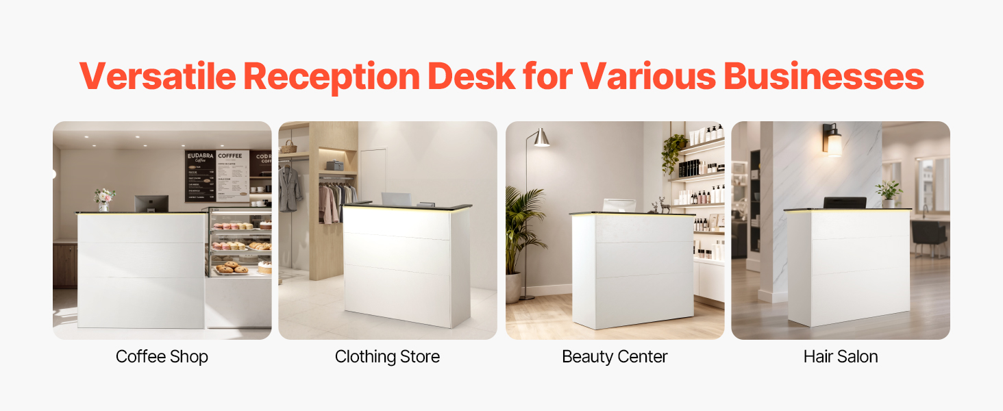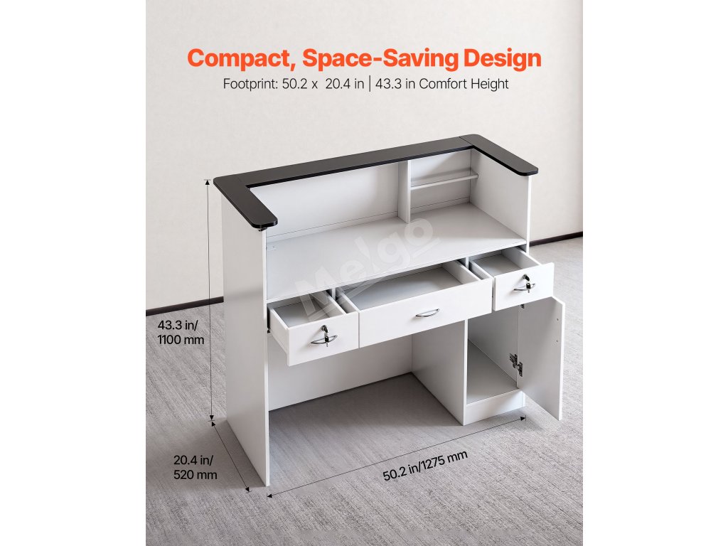 Naša recepčná pult má biely minimalistický dizajn, ktorý sa hodí k akémukoľvek interiéru. Vďaka kompaktným rozmerom sa hodí do recepčných priestorov kancelárií, domácich kancelárií, salónov, kaviarní, maloobchodných predajní a ďalších priestorov.