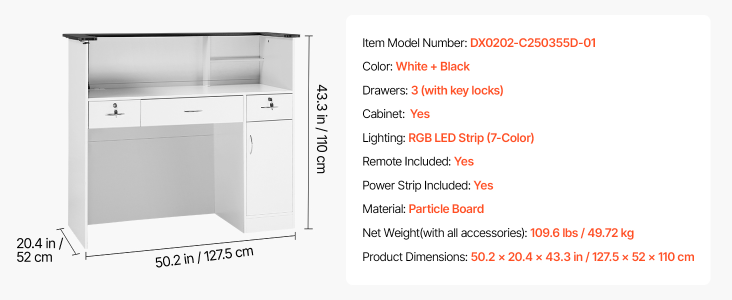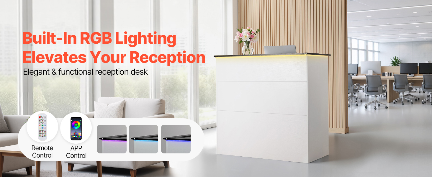 Vďaka nastaviteľnému RGB pásiku vytvára naša recepčná pult pre hostí prémiovú, profesionálnu atmosféru. Čistý, klasický dizajn s hrubými panelmi je odolný, zatiaľ čo uzamykateľná zásuvka a priestranná pultová doska zabezpečujú bezpečnosť nevyhnutných vecí a poriadok na pracovisku v akomkoľvek komerčnom prostredí.