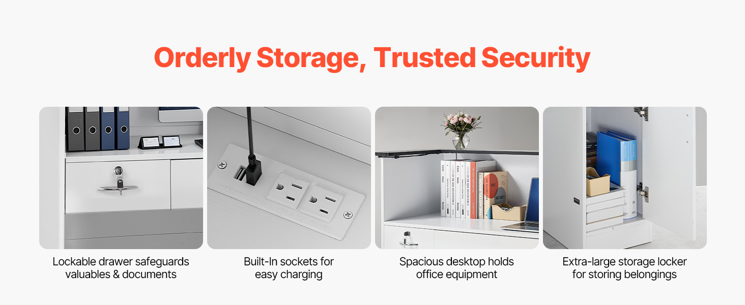 Naša recepčná pultová tabuľka je vybavená širokou doskou a pojme počítač a pokladničný systém. Uzamykateľná zásuvka chráni cennosti a dokumenty, zatiaľ čo úložná skrinka s magnetickými dvierkami slúži na uloženie osobných vecí. Integrovaná priechodka na káble vedie káble úhľadne, aby bola recepcia uprataná.