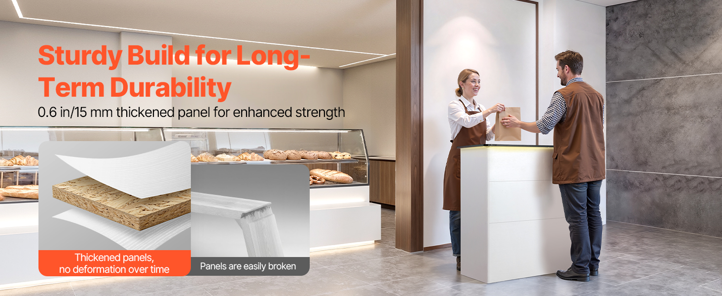 Vyrobený z hustej, hrubej drevotrieskovej dosky s odolným, vlhkosti odolným melamínovým povrchom. Tento biely recepčný pult sa dá utrieť za pár sekúnd, poskytuje vynikajúcu stabilitu, ľahkú údržbu a dlhú životnosť.