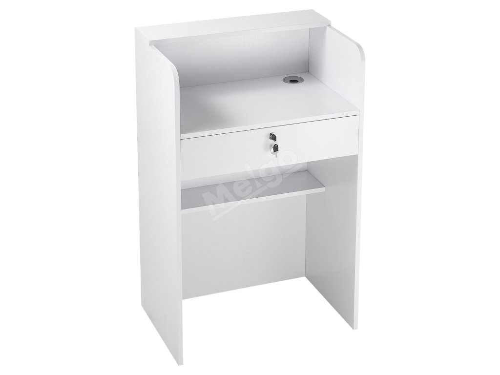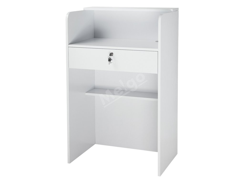 Recepčný pult 60 cm obdĺžnikový s zásuvkou, malý biely do lobby