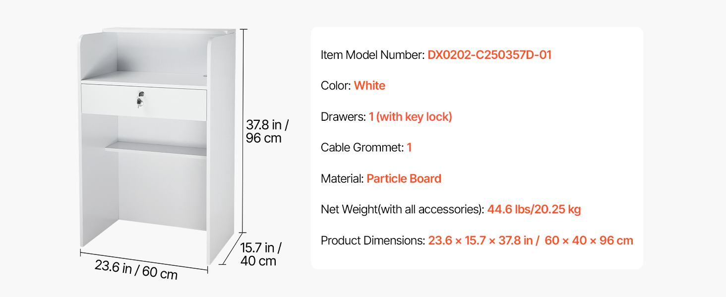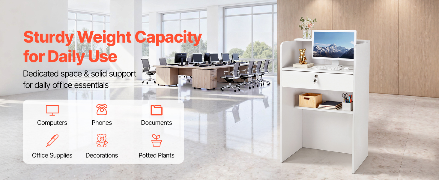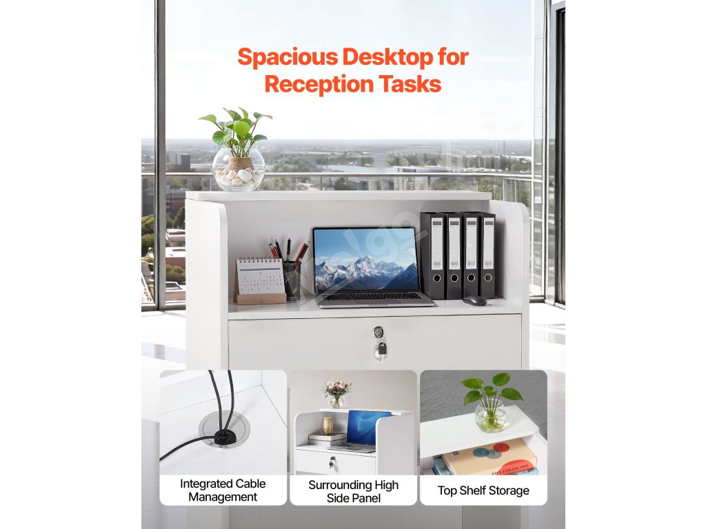 Naša recepčná pult má biely minimalistický dizajn, ktorý sa hodí k akémukoľvek interiéru. Vďaka kompaktným rozmerom sa hodí do recepčných priestorov kancelárií, domácich kancelárií, salónov, kaviarní, maloobchodných predajní a ďalších priestorov.