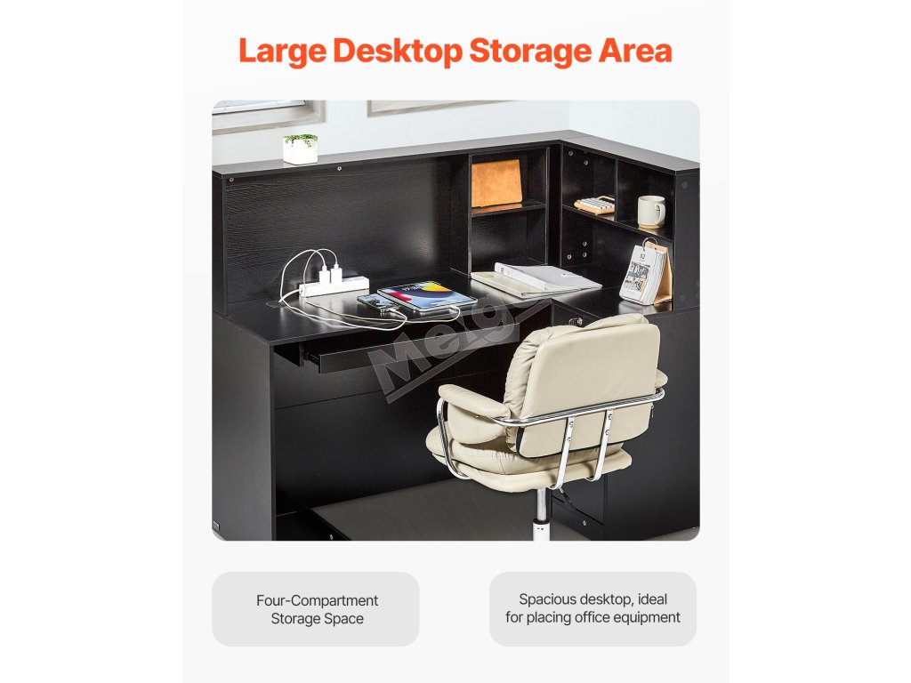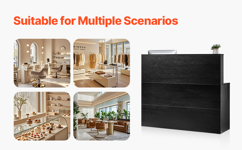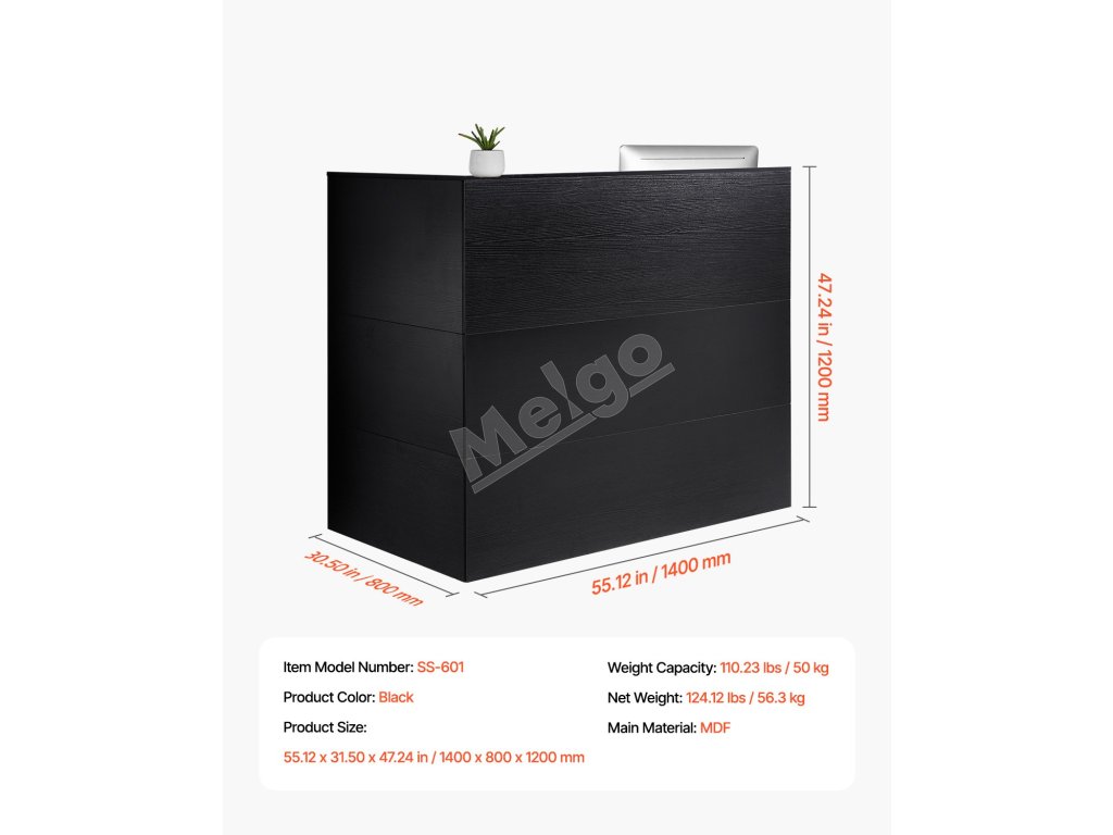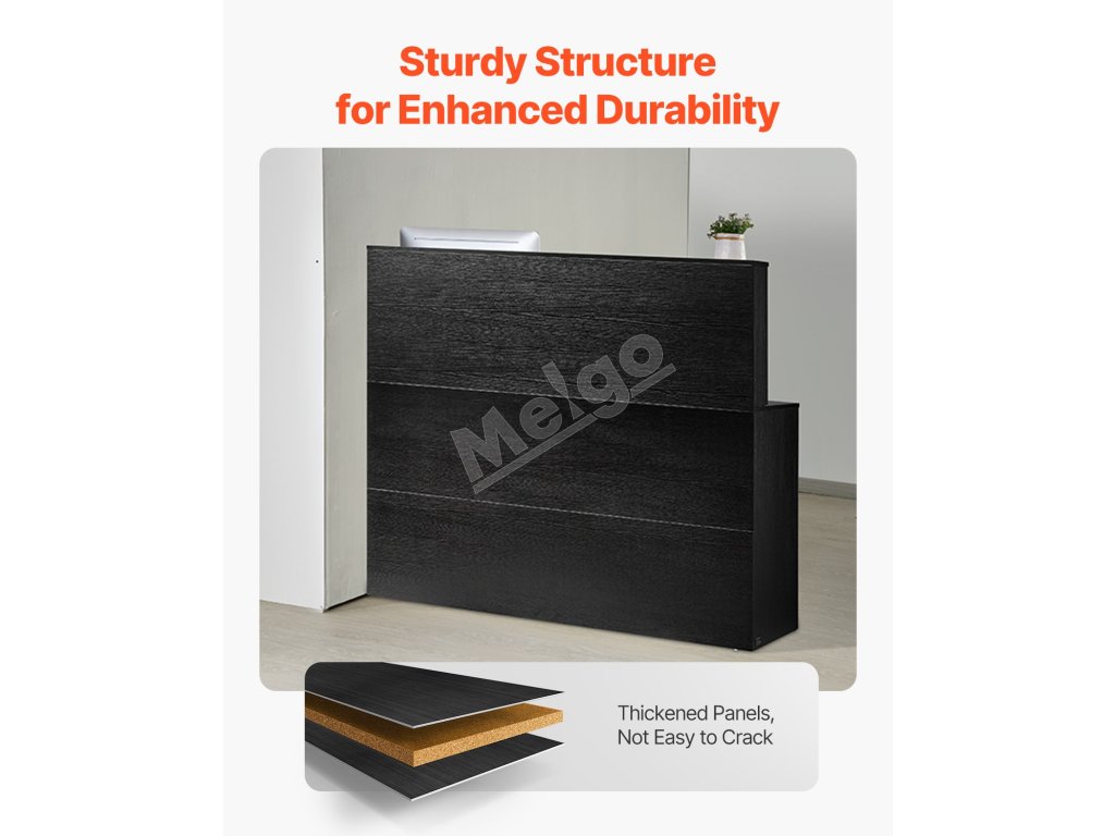 Tento recepčný stôl je vyrobený z odolnej, vodeodolnej MDF dosky s pevnou konštrukciou. Uzamykateľná konštrukcia zaručuje súkromie a zároveň ponúka dostatok úložného priestoru. Ľahko sa inštaluje a hodí sa do rôznych obchodných prostredí s ideálnou kombináciou štýlu a praktickosti.