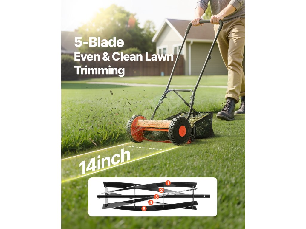 Táto 14-palcová ručná kosačka s piatimi nožmi z ocele 65 Mn poskytuje presné a rovnomerné kosenie pre malé až stredne veľké trávniky. Konštrukcia s nastaviteľnou výškou sa prispôsobí rôznym typom trávy a veľké kolesá a špongiová rukoväť znižujú námahu pri kosení. Priložené zberné vrecko na trávu uľahčuje čistenie.