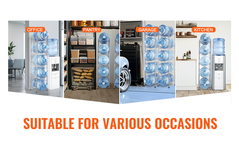 Stojan na džbány na vodu je ideálny do obývacích izieb, skladovacích priestorov, kuchýň, garáží, potravinových špajz, šatníkov, práčovní, telocviční a kancelárií. Poskytuje efektívne riešenie na uskladnenie viacerých fliaš.