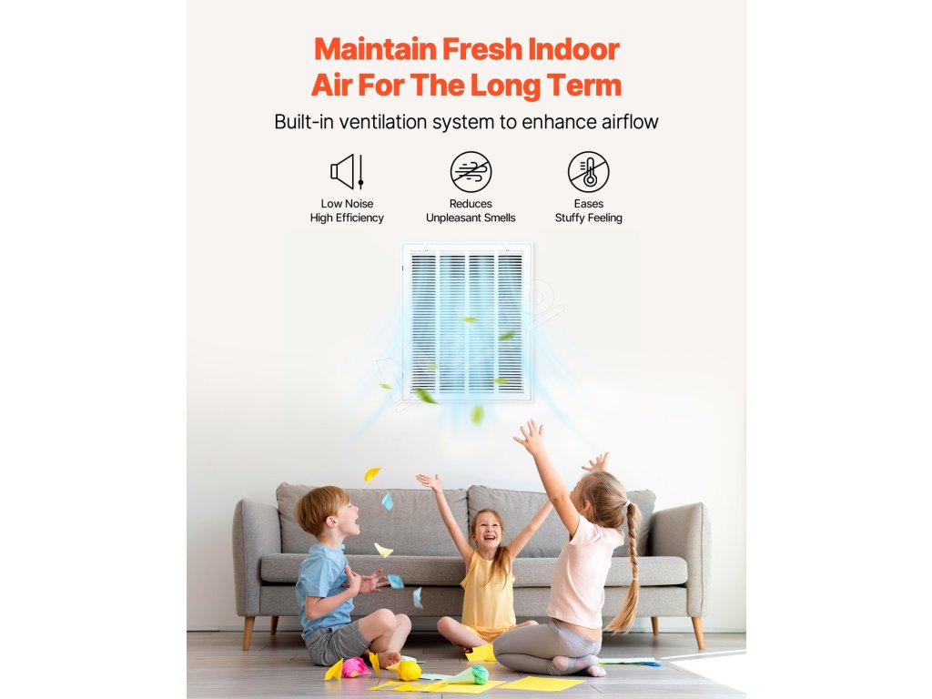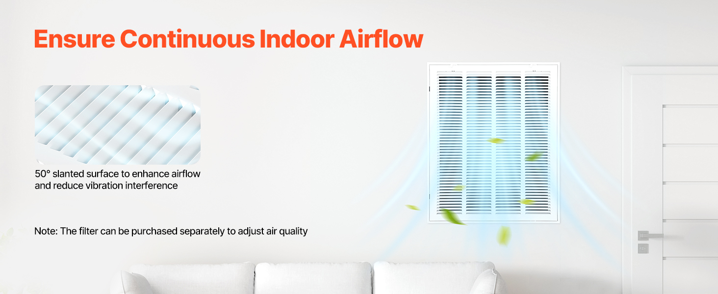 Vylepšené šikmé lamely zabezpečujú optimálne prúdenie vzduchu a zároveň znižujú hluk. Je vyrobená z odolnej ocele odolnej proti poškriabaniu s práškovou povrchovou úpravou a zvyšuje účinnosť vetrania a kvalitu vzduchu v domácnostiach aj firmách.