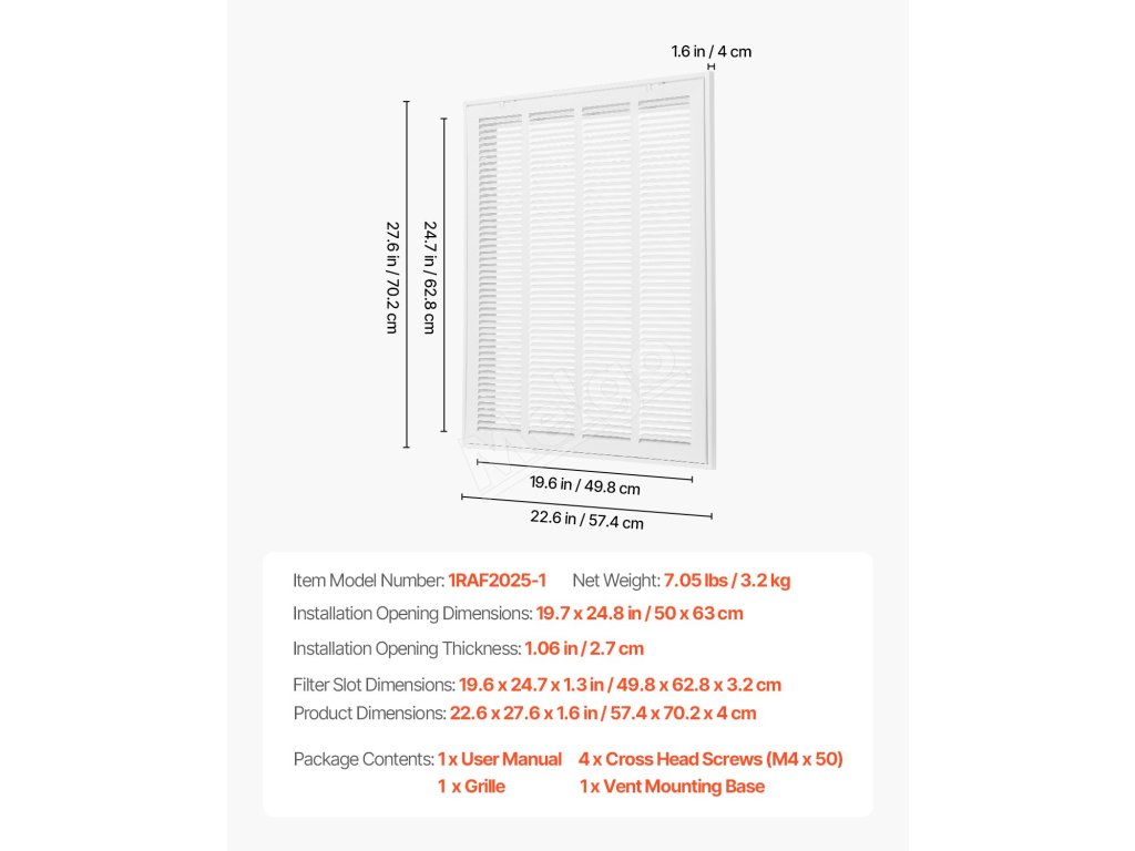 | Rozmery štrbiny filtra | 19.6 x 24,7 x 1,3 palca / 49,8 x 62,8 x 3,2 cm |