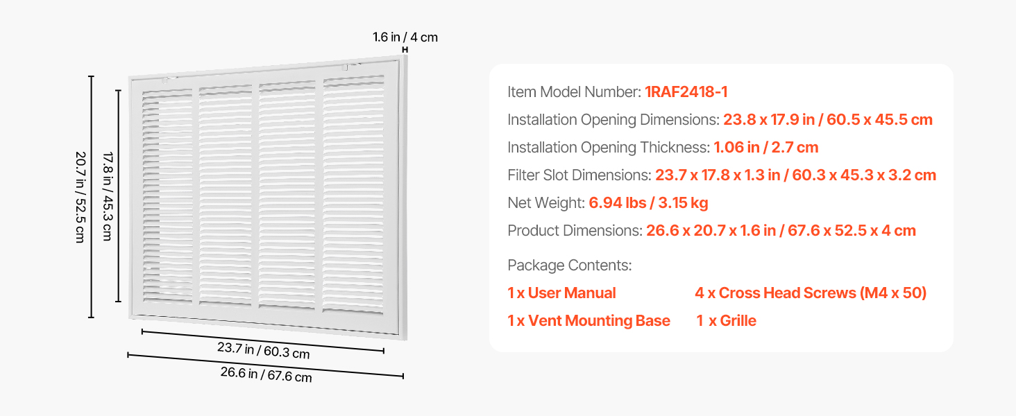 | Rozmery štrbiny filtra | 23.7 x 17,8 x 1,3 palca / 60,3 x 45,3 x 3,2 cm |