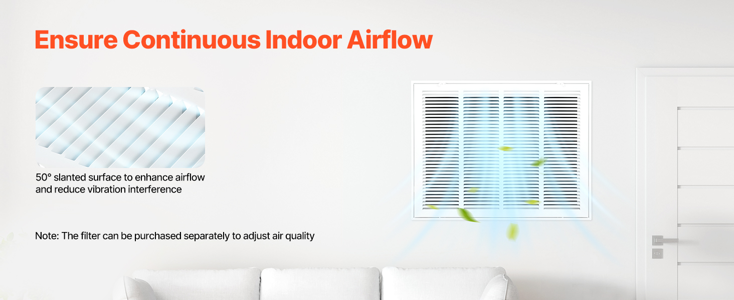 Šikmá mriežka maximalizuje prúdenie vzduchu na účinnú výmenu vzduchu medzi vnútornými a vonkajšími priestormi a zároveň podporuje inštaláciu filtrov na zlepšenie kvality vzduchu.