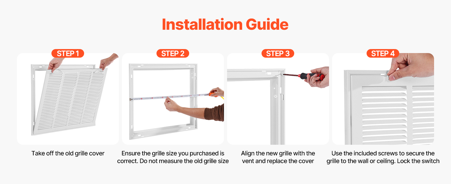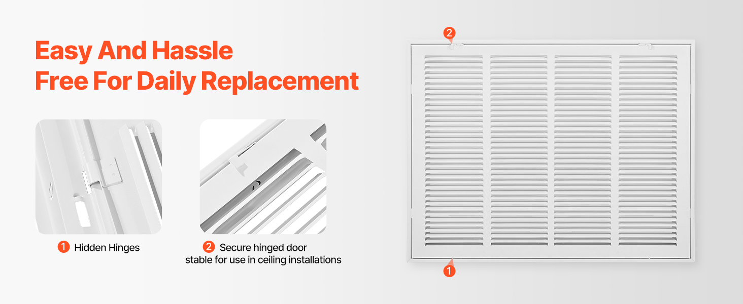 Mriežka spätného vzduchu je vybavená ľahko ovládateľným zámkom na pohodlné otváranie a zatváranie, čo zjednodušuje čistenie a výmenu. Skryté závesy sú vhodné na inštaláciu na strop, čím zabezpečujú vysokú bezpečnosť.