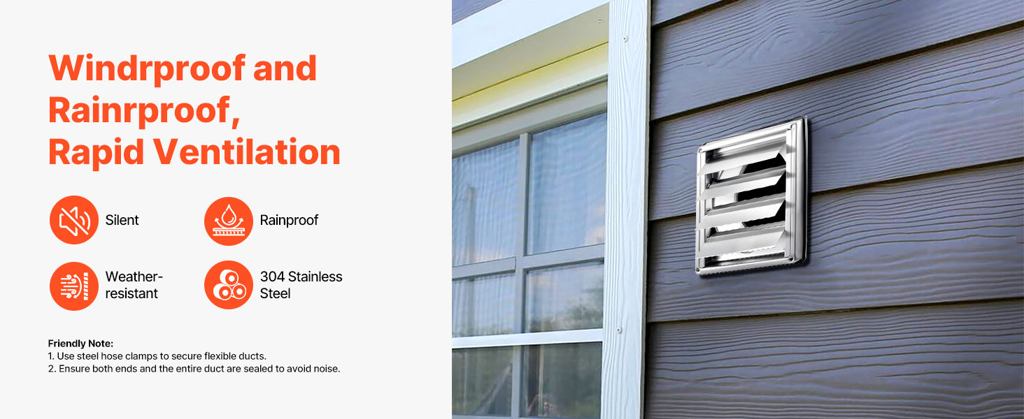 Vhodné na použitie v kúpeľniach, garážach, kuchyniach, pivniciach alebo v miestnostiach pre domáce zvieratá. Možno ho tiež pripojiť k sušičkám alebo klimatizačným systémom na účinné vetranie.