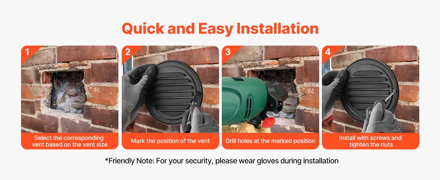 Naše kryty vetracích otvorov sa dodávajú v rôznych veľkostiach, z ktorých si môžete vybrať. Správnu veľkosť si môžete vybrať na základe priemeru vetracieho otvoru vo vašom dome, aby sa ideálne prispôsobil.