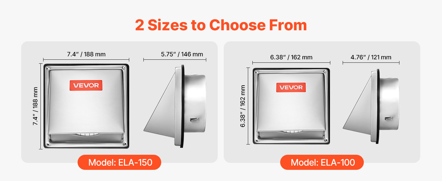 Naše kryty vetracích otvorov sa dodávajú v rôznych veľkostiach, z ktorých si môžete vybrať. Správnu veľkosť si môžete vybrať na základe priemeru vetracieho otvoru vo vašom dome, aby sa ideálne prispôsobil.