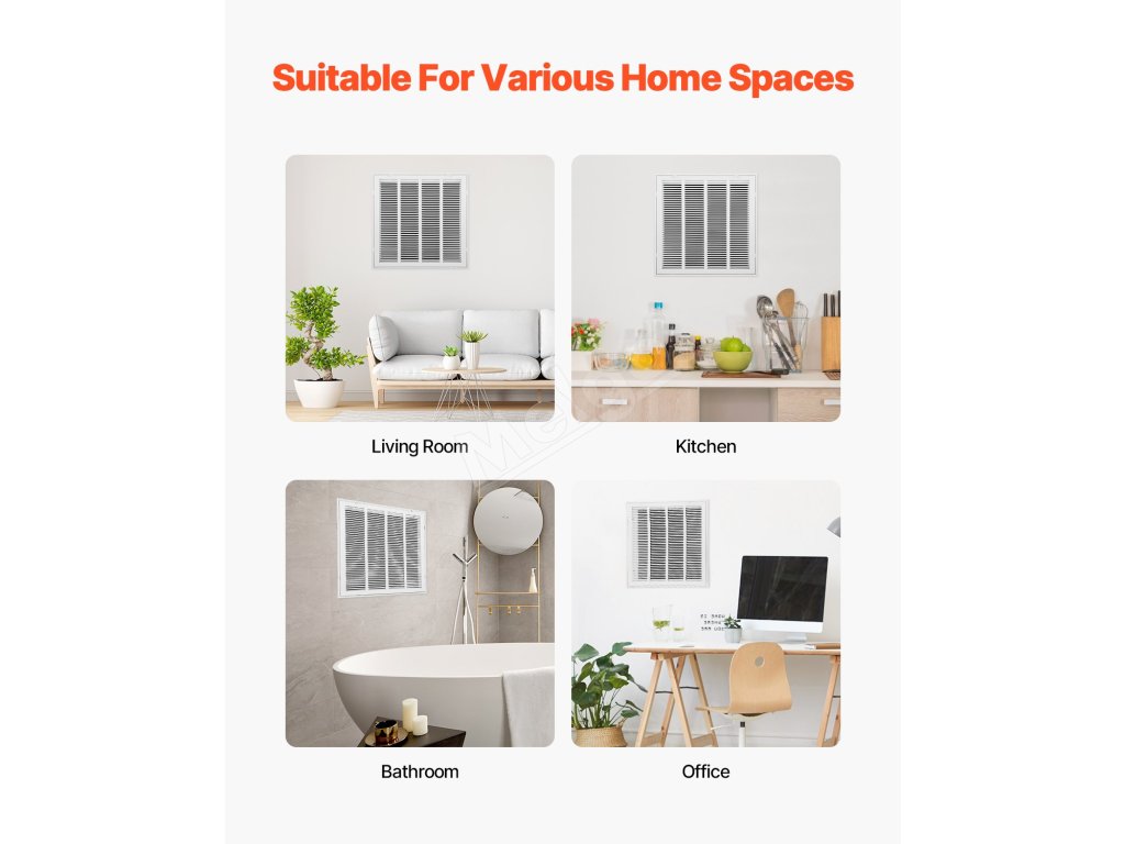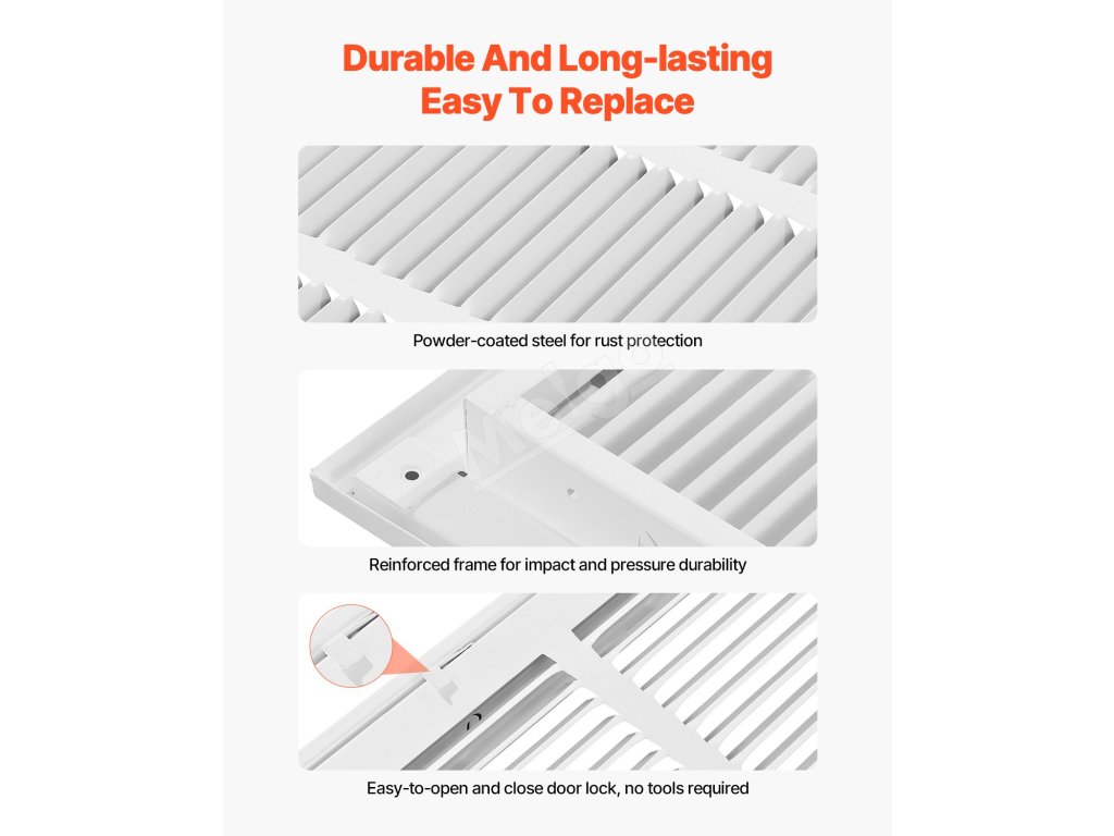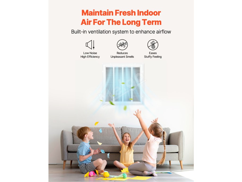 Vylepšené šikmé lamely zabezpečujú optimálne prúdenie vzduchu a zároveň znižujú hluk. Je vyrobená z odolnej ocele odolnej proti poškriabaniu s práškovou povrchovou úpravou a zvyšuje účinnosť vetrania a kvalitu vzduchu v domácnostiach aj firmách.