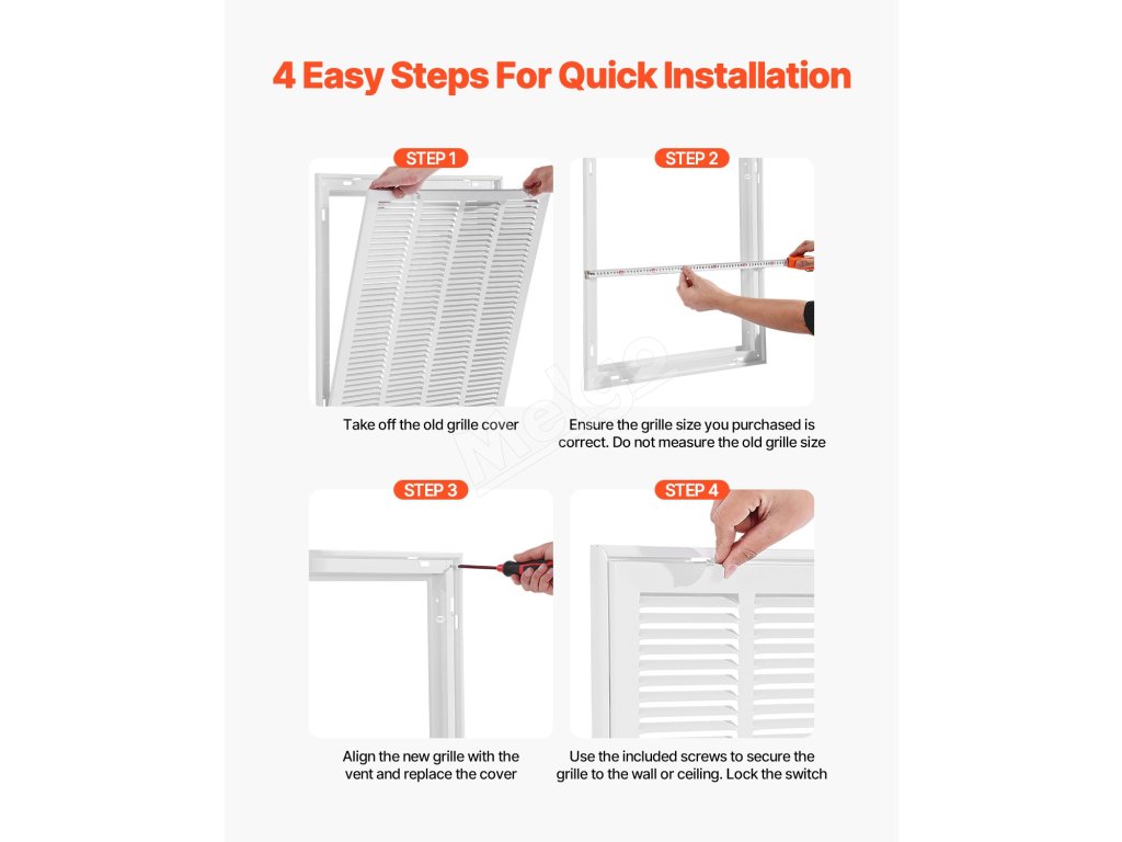 Dodané skrutky umožňujú rýchle nastavenie, vďaka čomu môžete dokončiť inštaláciu len v 4 jednoduchých krokoch a aktivovať systém vetrania interiéru.
