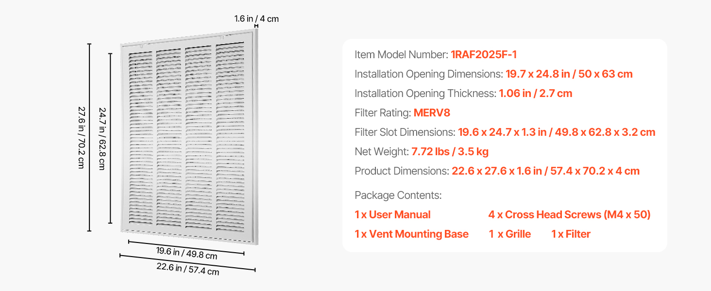 | Rozmery štrbiny filtra | 19.6 x 24,7 x 1,3 palca / 49,8 x 62,8 x 3,2 cm |