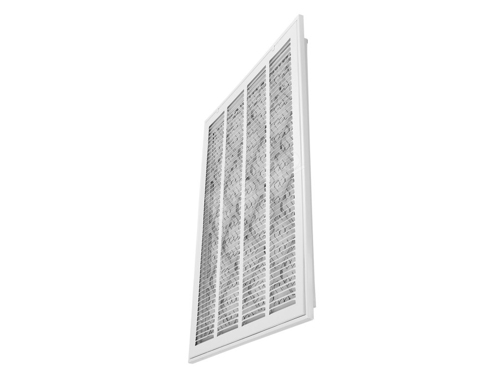 Vylepšené šikmé lamely zabezpečujú optimálne prúdenie vzduchu a zároveň znižujú hluk. Je vyrobená z odolnej ocele odolnej proti poškriabaniu s práškovou povrchovou úpravou a zvyšuje účinnosť vetrania a kvalitu vzduchu v domácnostiach aj firmách.