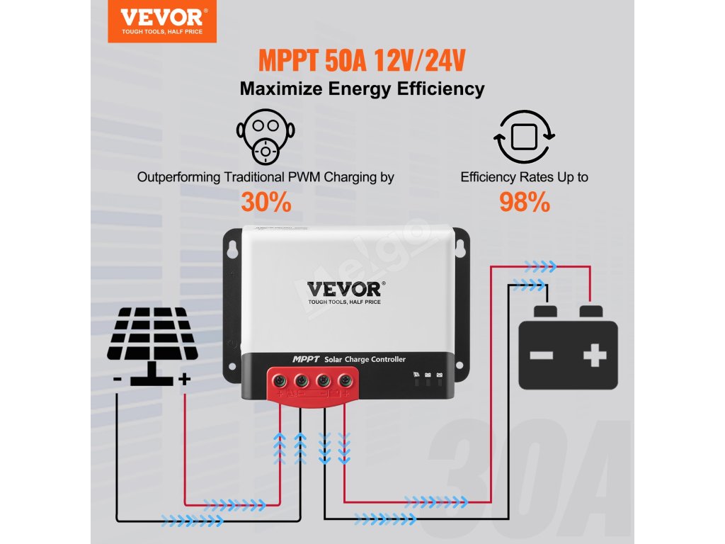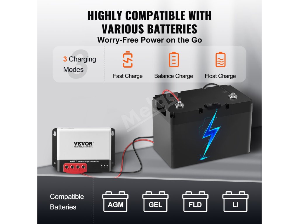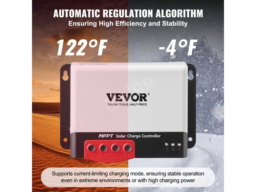 Vhodný pre rôzne prostredia a zariadenia, od domácich solárnych systémov až po mobilné fotovoltaické systémy, a podporuje maximálny výkon solárnych panelov 12 V 660 W / 24 V 1320 W; kompatibilný s rôznymi bežnými uzavretými batériami s hlbokým cyklom, ako sú AGM, gélové, zaplavené a lítiové batérie.