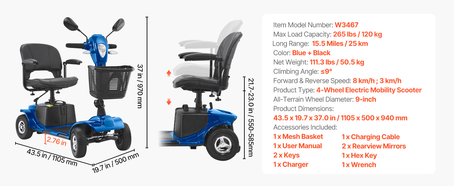 Štvorkolesový skladací skúter VEVOR unesie až 120 kg a ponúka spoľahlivú mobilitu pre seniorov, dospelých a osoby so zdravotným postihnutím. Batéria 24V 20Ah poskytuje predĺžený dojazd až 25 km na jedno nabitie, poskytuje spoľahlivú stabilitu a silnú podporu pre plynulú mobilitu.