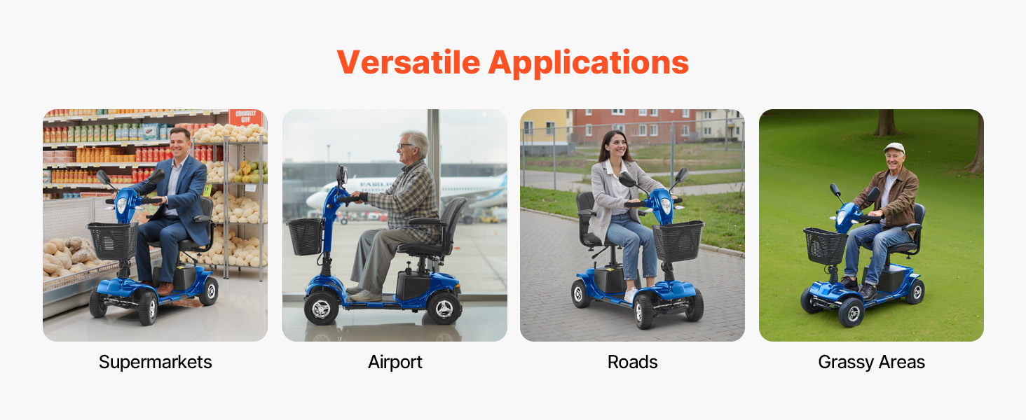 Či už sa pohybujete po letiskách, nakupujete v supermarketoch, alebo jazdíte po ulici, táto elektrická kolobežka sa vám dokonale prispôsobí. Váš spoľahlivý spoločník v oblasti mobility pre plynulú a pohodlnú jazdu kedykoľvek a kdekoľvek.