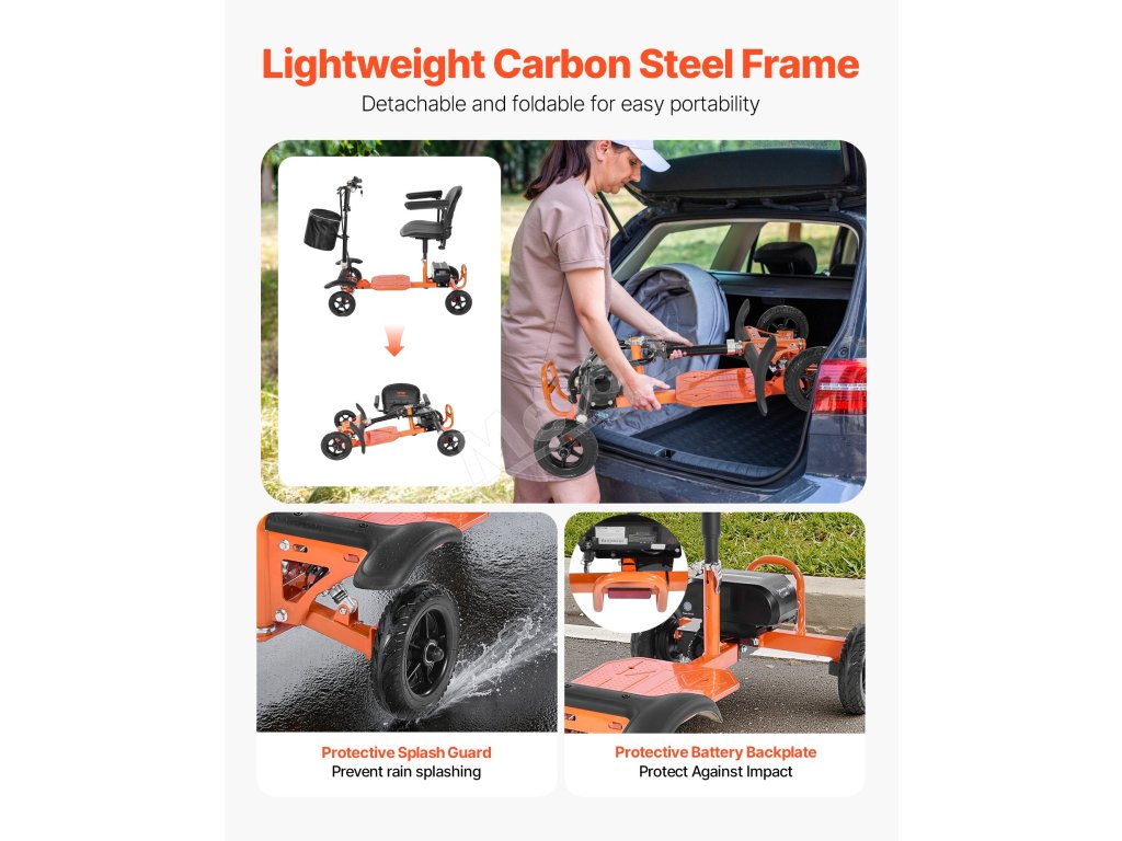 Štvorkolesový skladací skúter VEVOR unesie až 120 kg a ponúka lepšiu mobilitu pre starších ľudí, dospelých a osoby so zdravotným postihnutím. 48V 5,2Ah lítiová batéria poskytuje predĺžený dojazd, spoľahlivú stabilitu a silnú podporu pre plynulú mobilitu.