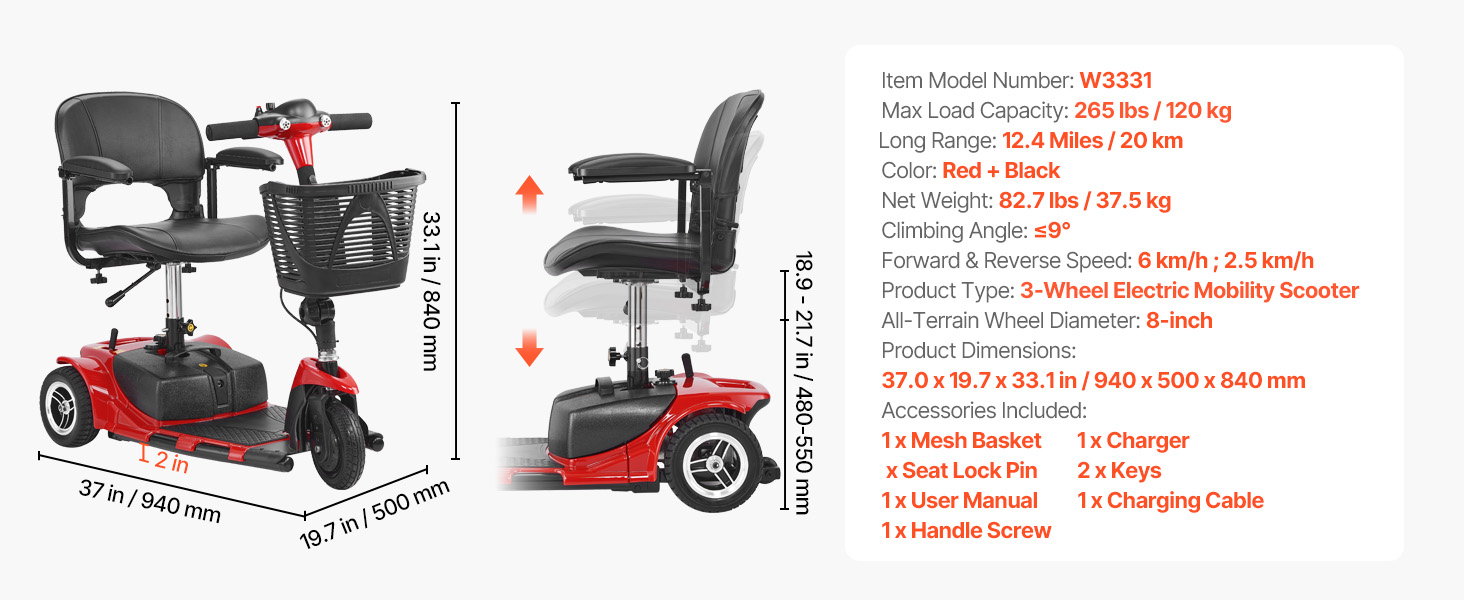 Trojkolesový skladací skúter VEVOR unesie až 120 kg a ponúka spoľahlivú mobilitu pre seniorov, dospelých a osoby so zdravotným postihnutím. Batéria 24 V 12 Ah poskytuje predĺžený dojazd až 20 km na jedno nabitie, poskytuje spoľahlivú stabilitu a silnú podporu pre plynulú mobilitu.
