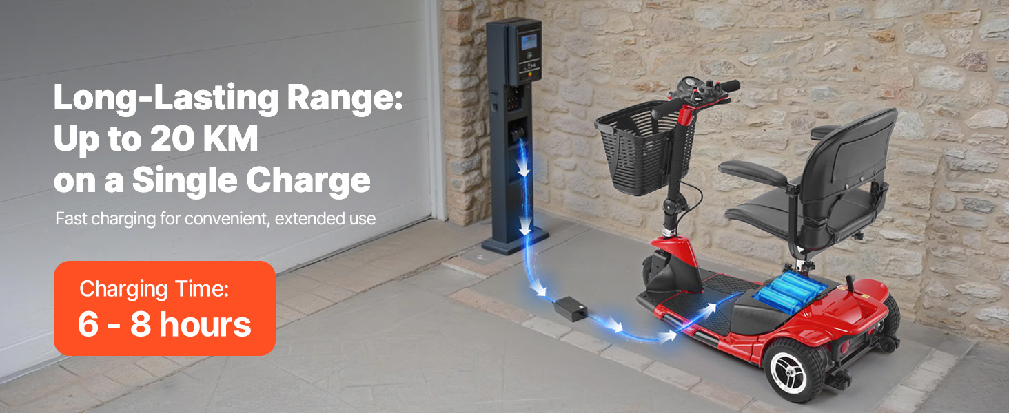 Náš 3-kolesový elektrický skúter je vybavený vysokokapacitnou 24V 12Ah batériou, ktorá ponúka až 20 km jazdy na jedno nabitie a zaručuje spoľahlivý a dlhotrvajúci výkon počas vašich výletov.