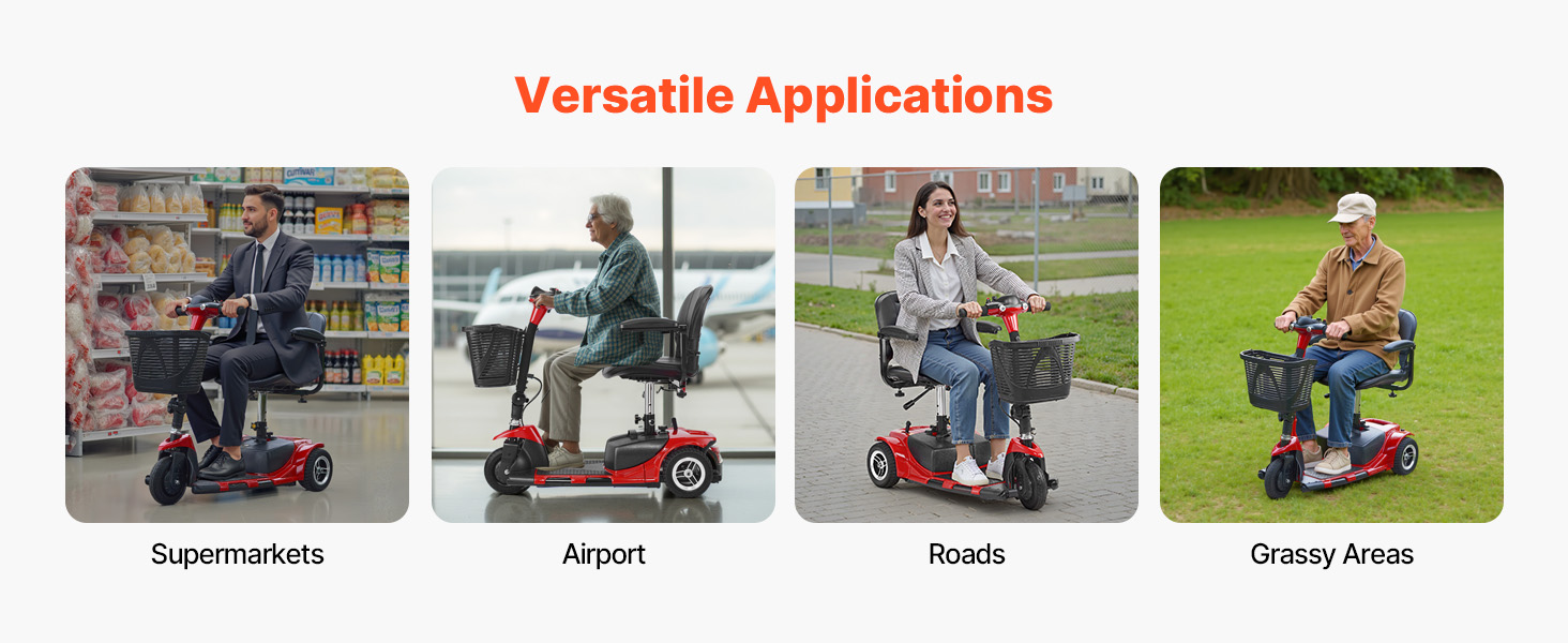 Či už sa pohybujete po letiskách, nakupujete v supermarketoch alebo sa pohybujete po ulici, tento elektrický pojazdný skúter sa vám dokonale prispôsobí. Váš spoľahlivý spoločník v oblasti mobility pre plynulú a pohodlnú jazdu kedykoľvek a kdekoľvek.