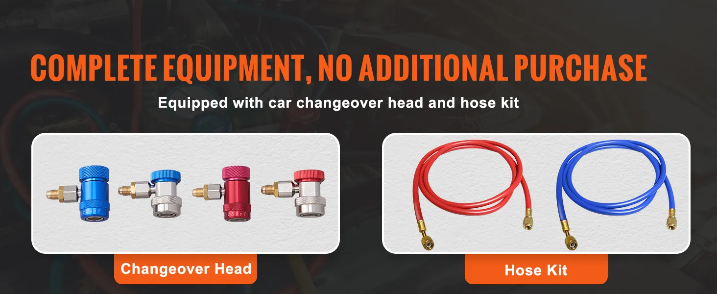 Vybavené tromi pevne utesnenými fľašami na olej, ktoré nie je ľahké vytekať, a stupnica na fľaši pomáha presne plniť olej PAG a POE.