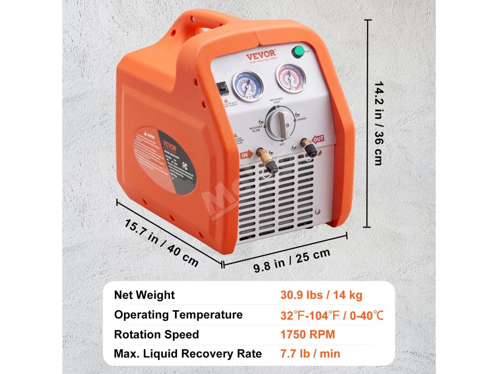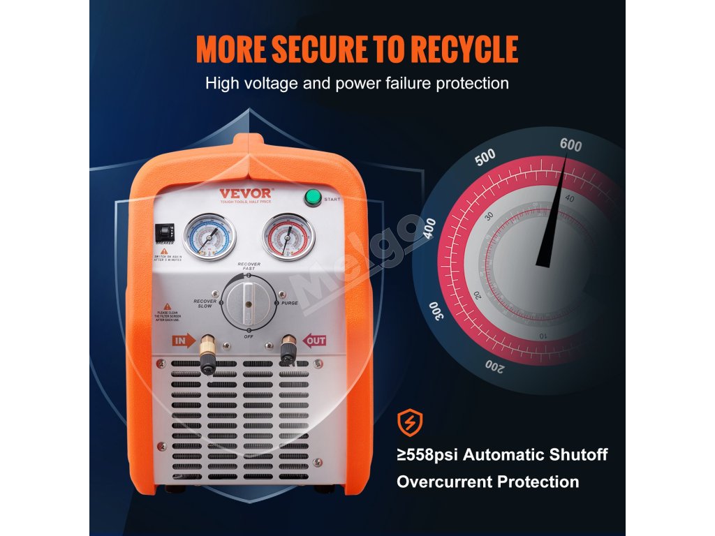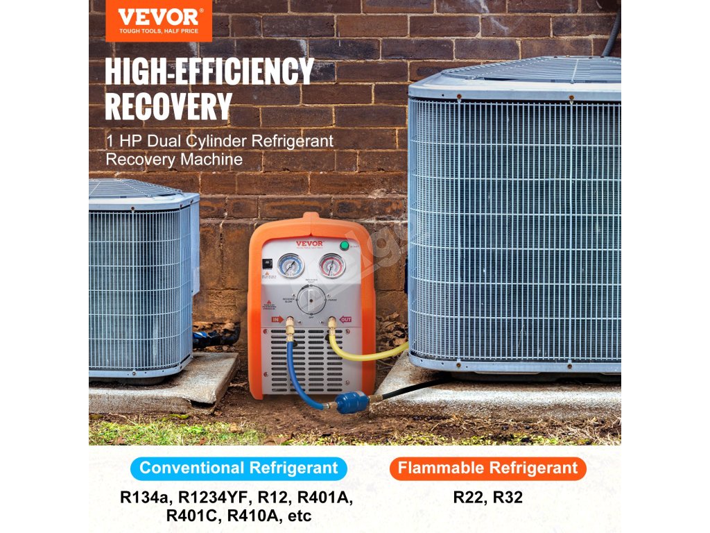 Dvojvalec VEVOR 1HP dokáže vo veľkej miere regenerovať bežné chladivá Ⅲ, Ⅳ, Ⅴ.Môžete tiež bezpečne recyklovať dve horľavé chladivá: R32 a R22.