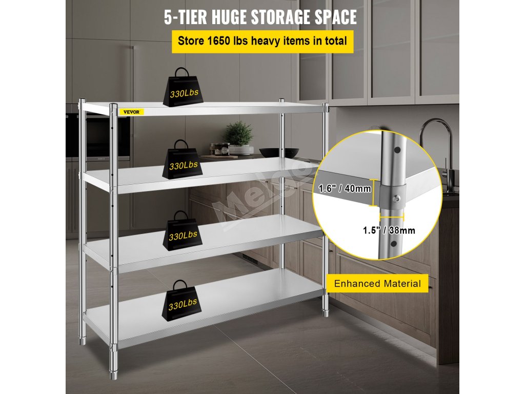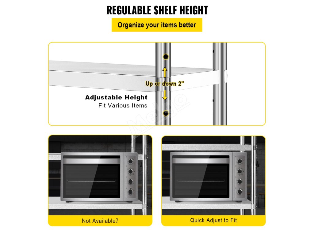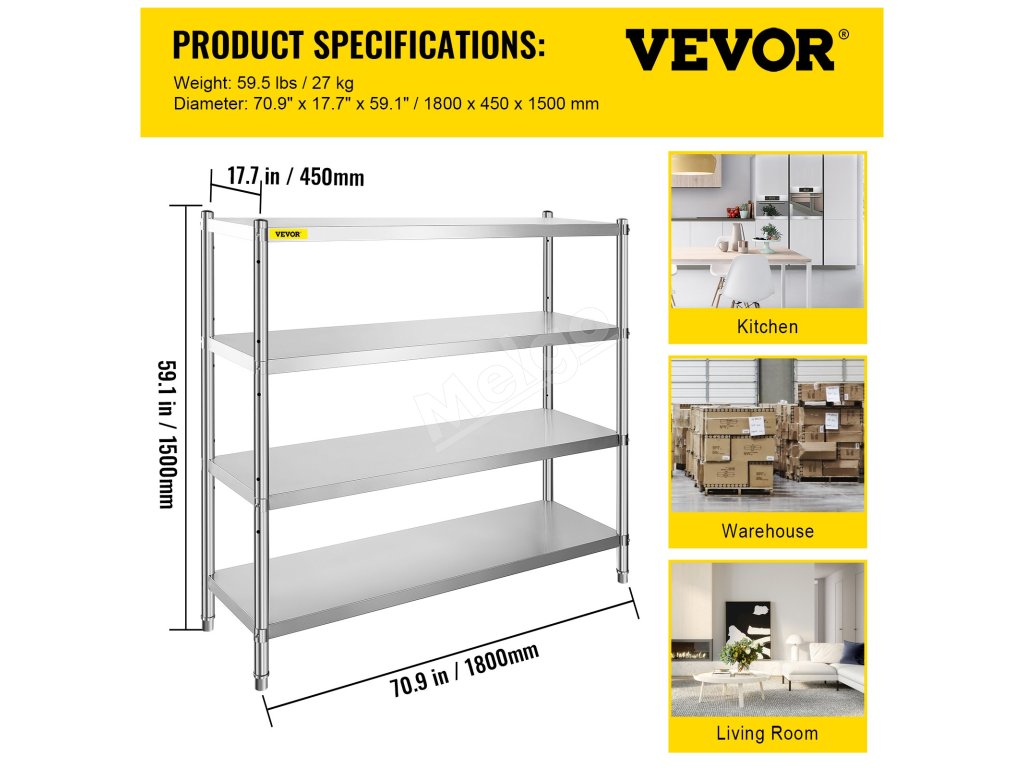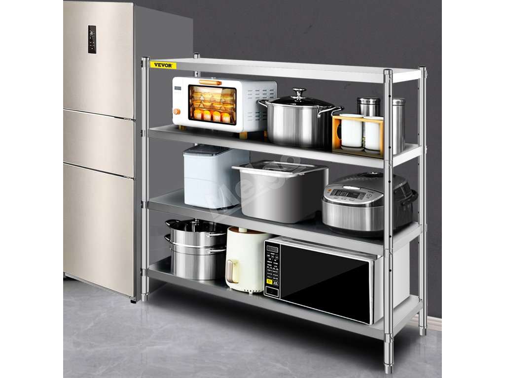 Táto 4-úrovňová nerezová polica je vhodná na rôzne príležitosti. Je možné ju napríklad umiestniť do kuchyne na kuchynský riad alebo do garáže na súpravy pre automobilový servis.