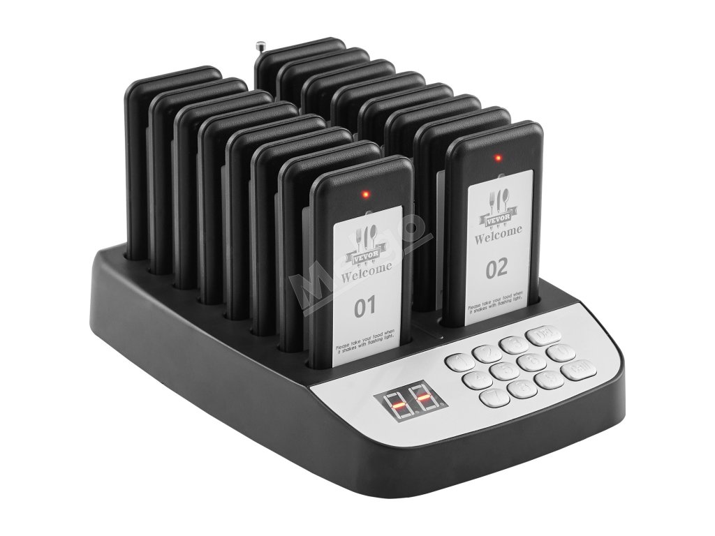 Bezdrôtový pager systém, dosah 500 m, 16 pagerov, vibrácie a blikanie