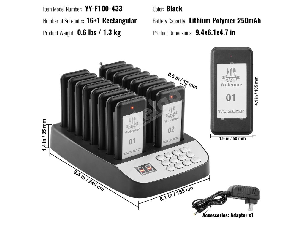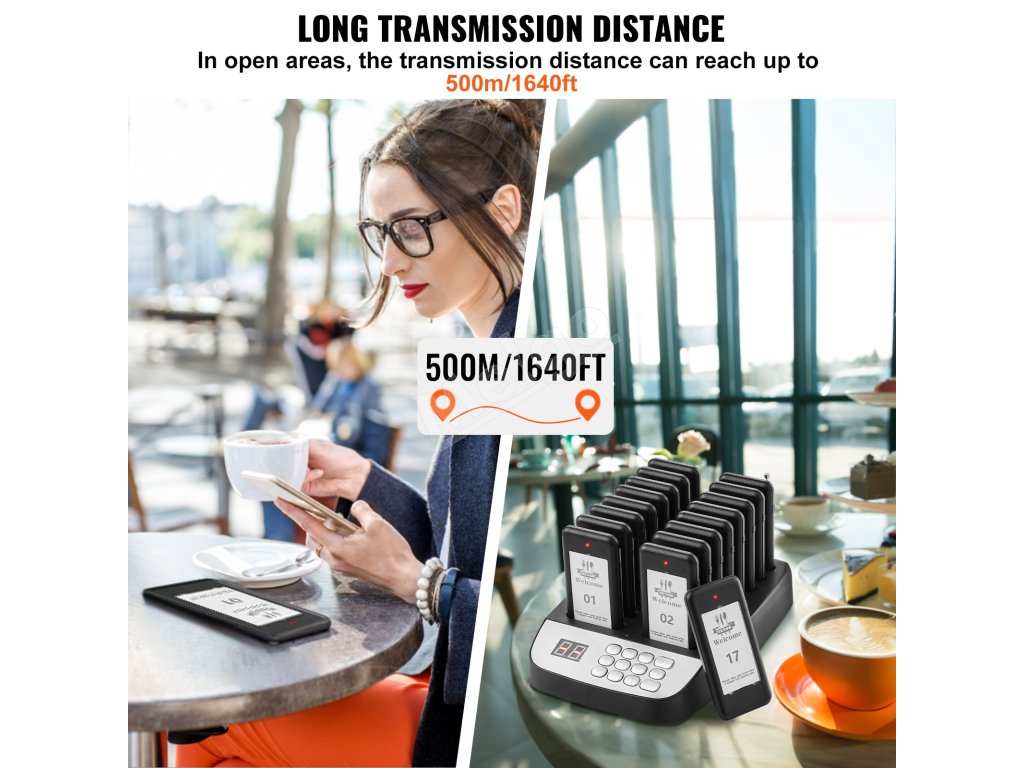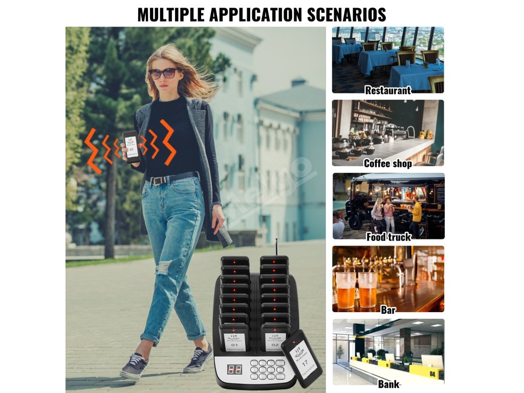 Reštauračný pagerový systém pozostáva z 98-kanálového mechanického klávesnicového vysielača a 16 pagerov. Zákazníci nemusia stáť v rade, čím sa zachováva sociálny odstup a zvyšuje efektivita.