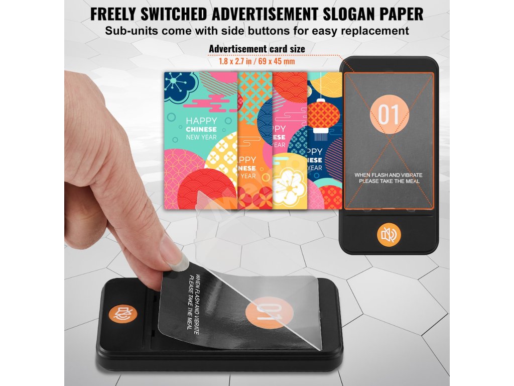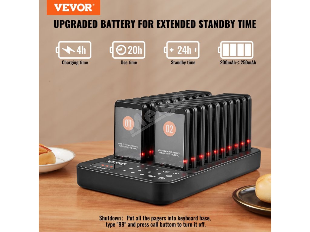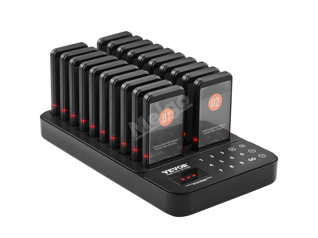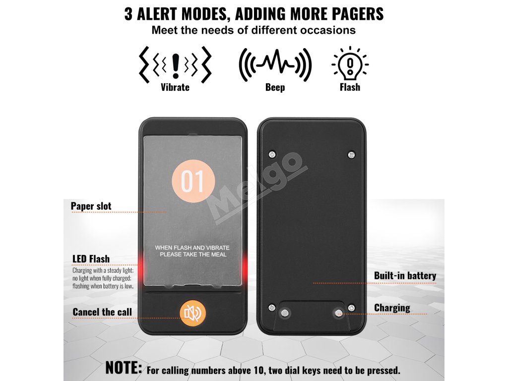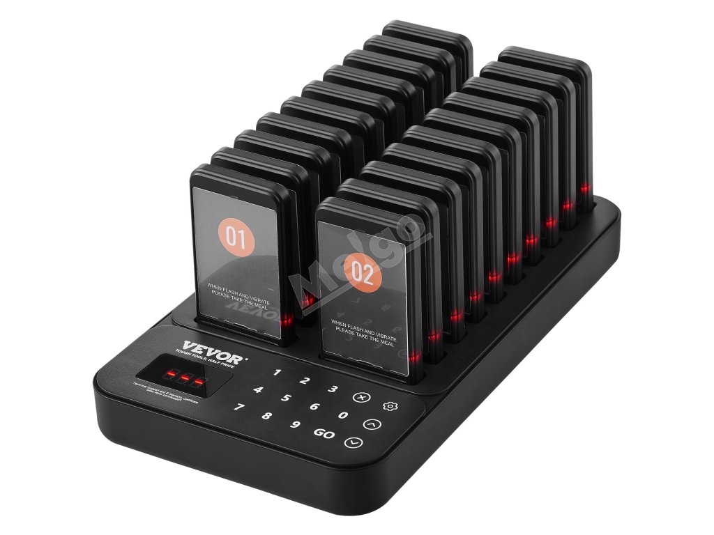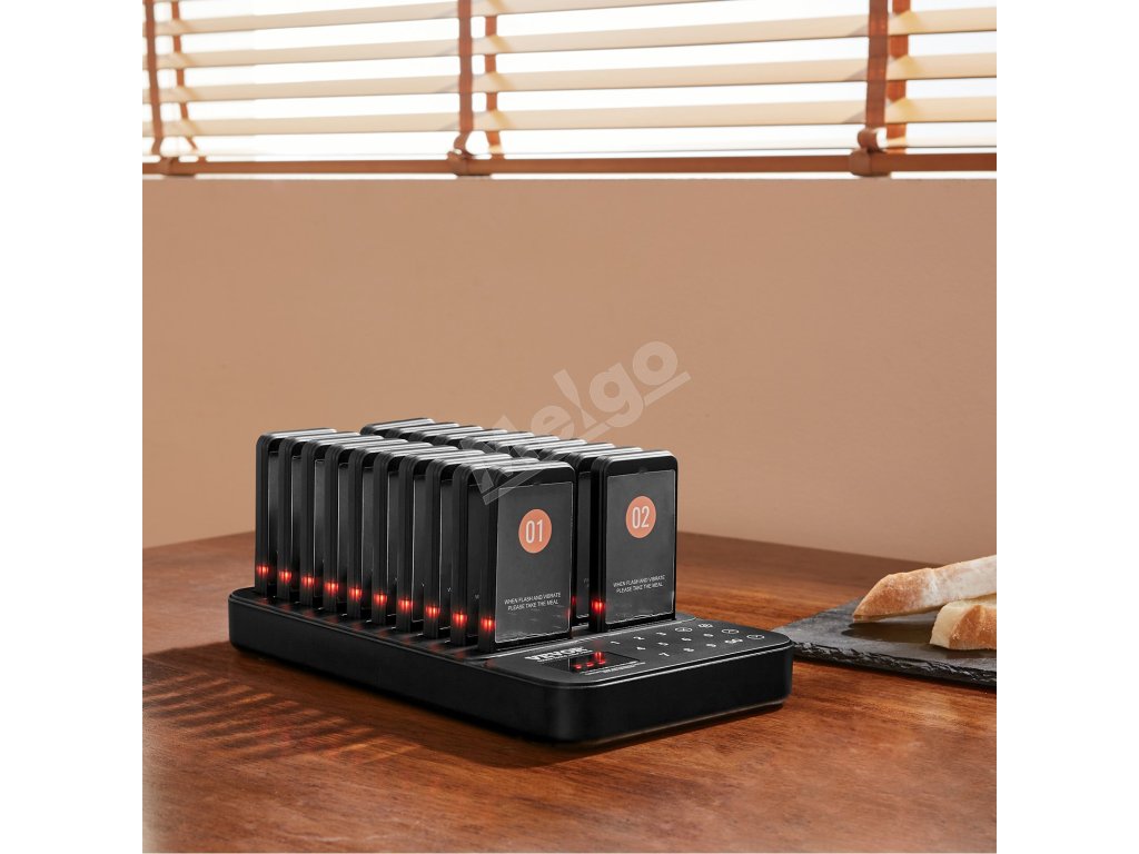 Reštauračný pagerový systém pozostáva z 998-kanálového bezdrôtového vysielača s dotykovou klávesnicou a 20 pagerov. Zákazníci nemusia stáť v rade, čím sa zachováva sociálny odstup a zvyšuje efektivita.