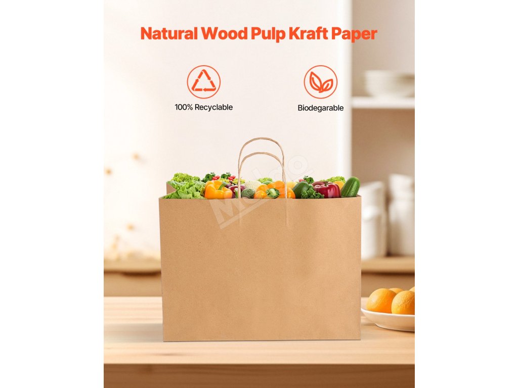 Stopercentne recyklovateľný a biologicky rozložiteľný materiál pomáha znižovať vplyv na životné prostredie, je ideálnou voľbou na nahradenie plastových tašiek.