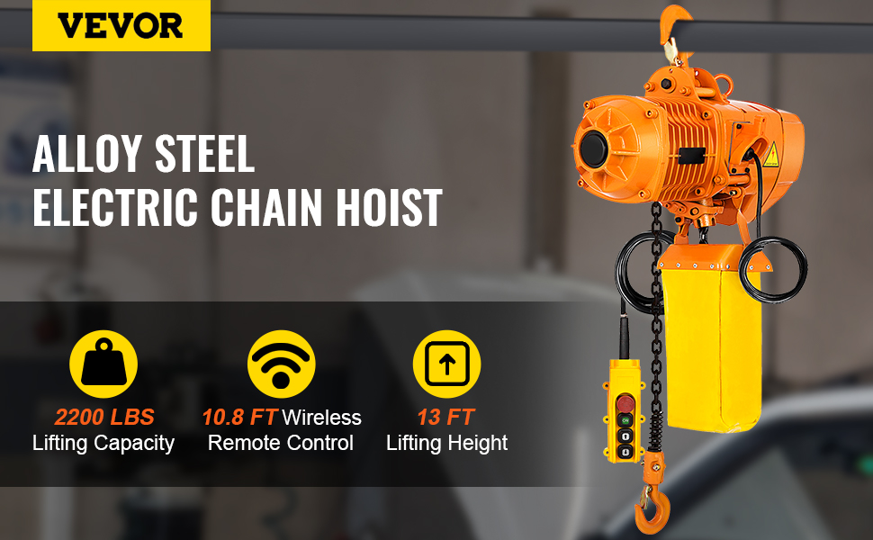 Elektrický reťazový kladkostroj 2200 lbs, zdvih 13 ft, 11 ft/min, 230V