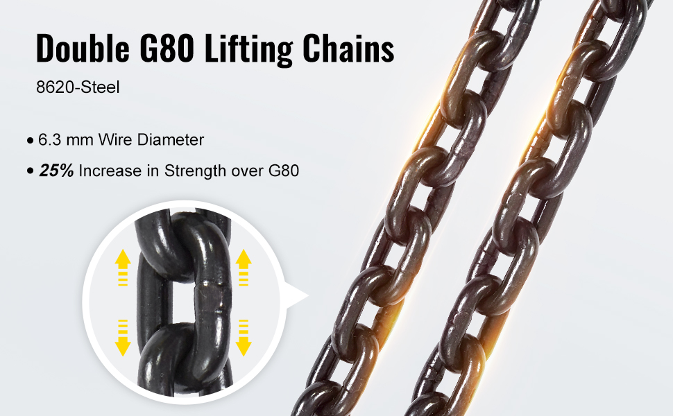 Robustná reťaz poskytuje elektrickému reťazovému kladkostroju nižšiu celkovú hmotnosť a vyššiu pevnosť. Prenáša ťažké bremená pri zachovaní pohodlia.