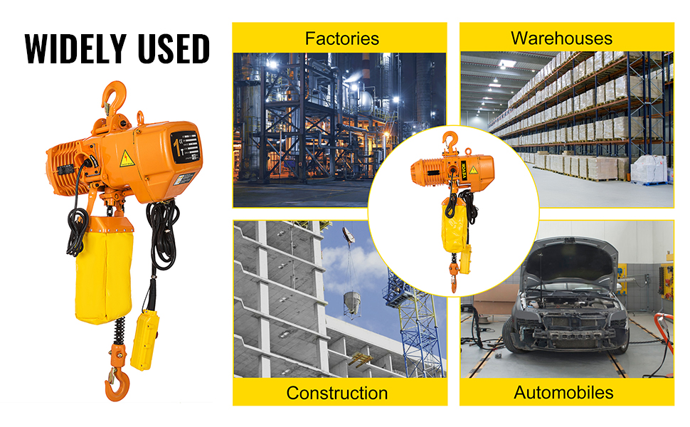 Účinný medený motor zabezpečuje stabilné a bezpečné zdvíhanie ťažkých predmetov. Vďaka systému núdzového brzdenia a systému vzduchového chladenia je reťazový elektrický zdvihák spoľahlivý a bezpečný na používanie.