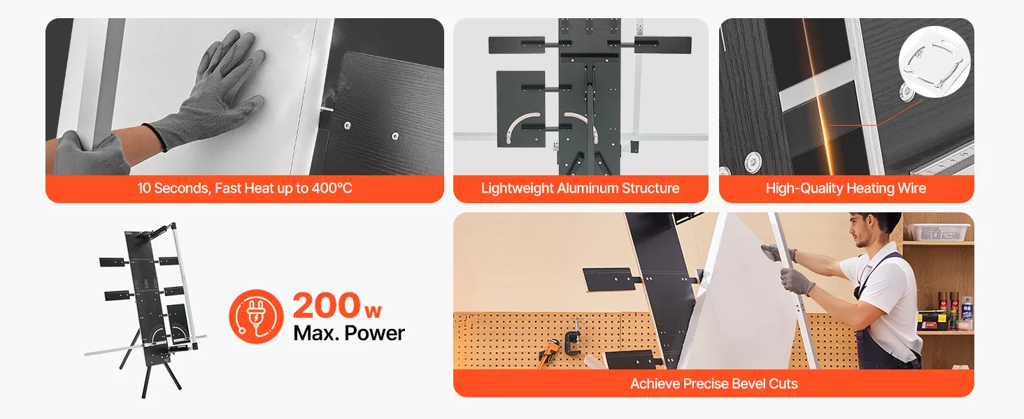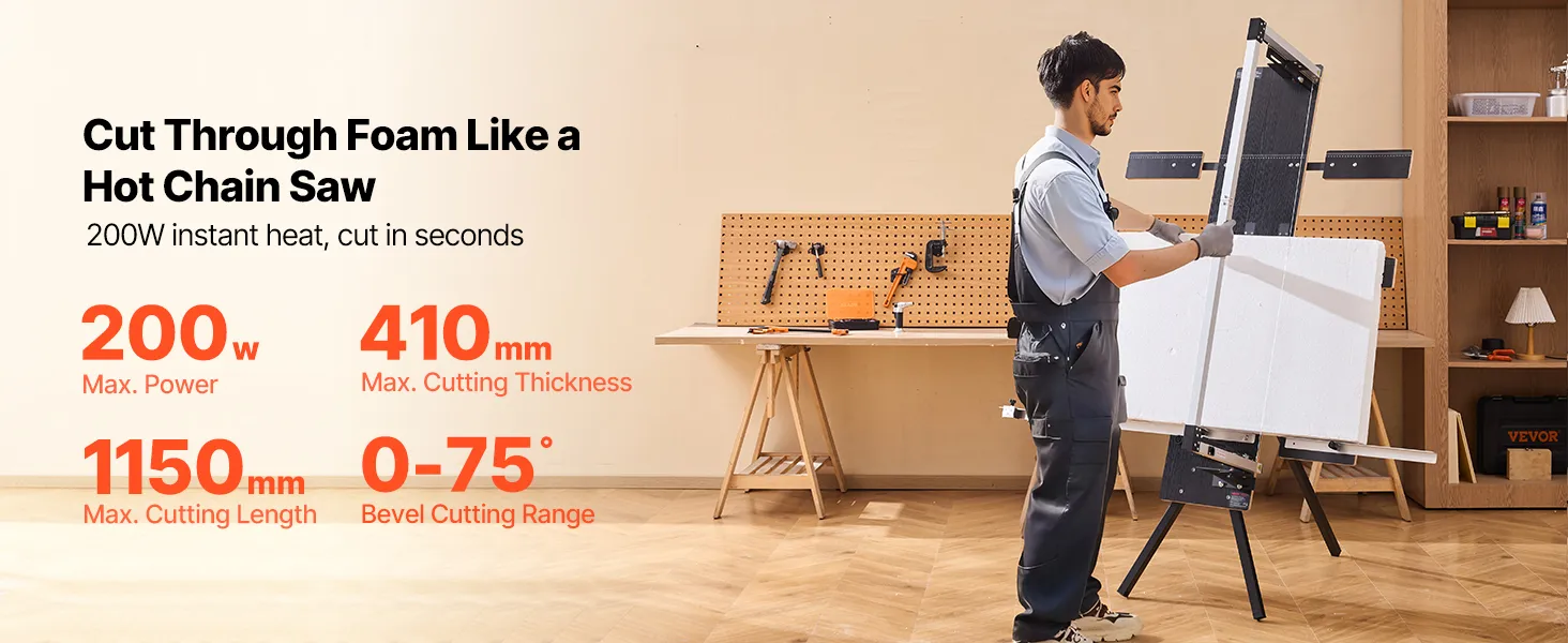 Vybavený predĺženými bočnými panelmi na zväčšenie pracovnej plochy, čo uľahčuje manipuláciu s veľkými penovými doskami s väčšou stabilitou a presnosťou.