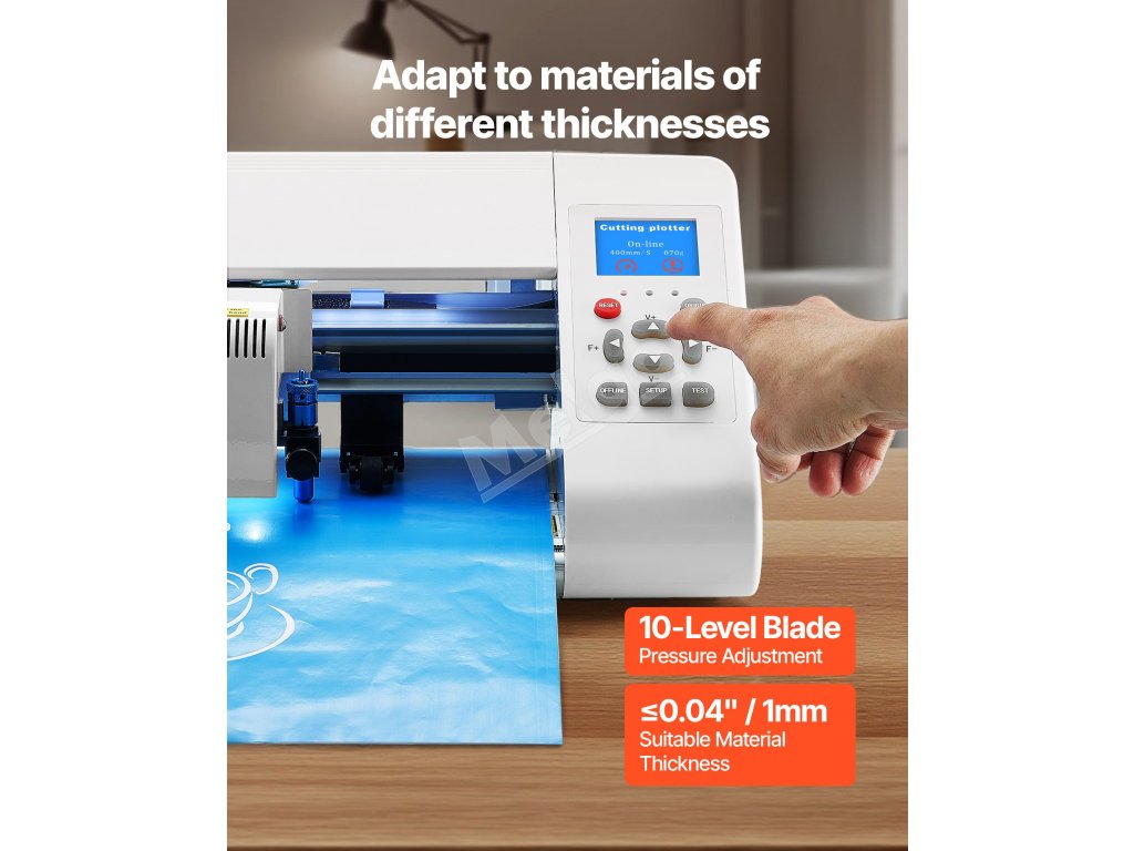 Farebná obrazovka rezacieho zariadenia s vysokým rozlíšením zobrazuje jasné ikony a pomocou tlačidiel môžete ľahko nastaviť parametre pre plynulejšie používanie.