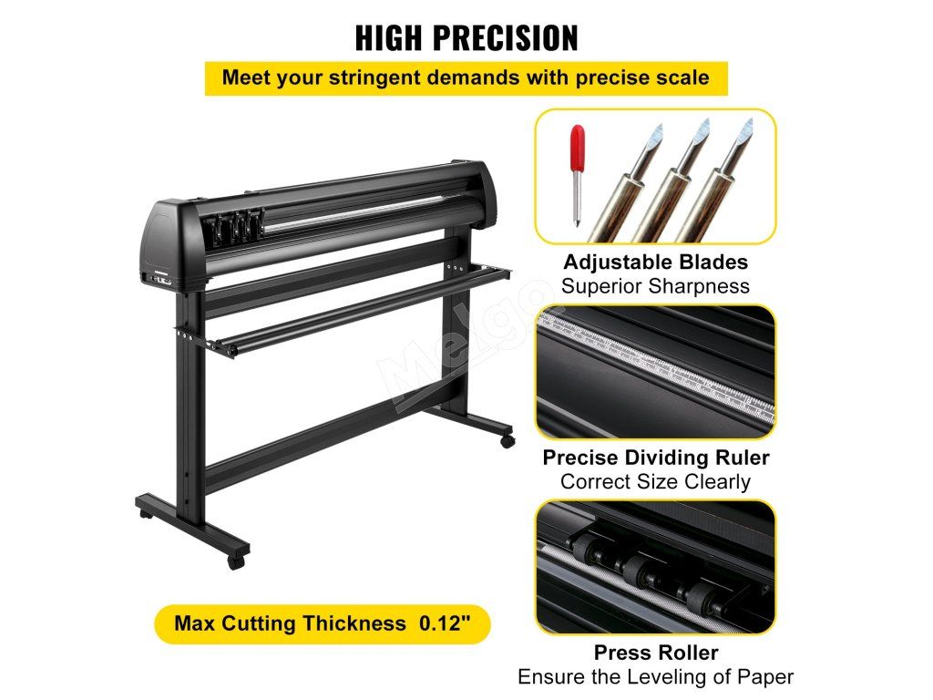 Maximálna hrúbka rezu: 0,12 palca / 3 mm; presnosť rezania: ±0,0004 palca / ±0,01 mm. Dôvodom sú dve vymeniteľné čepele a presné deliace pravítko v našom plotrovom rezači vinylu, ktoré sú neuveriteľne ostré a presné.